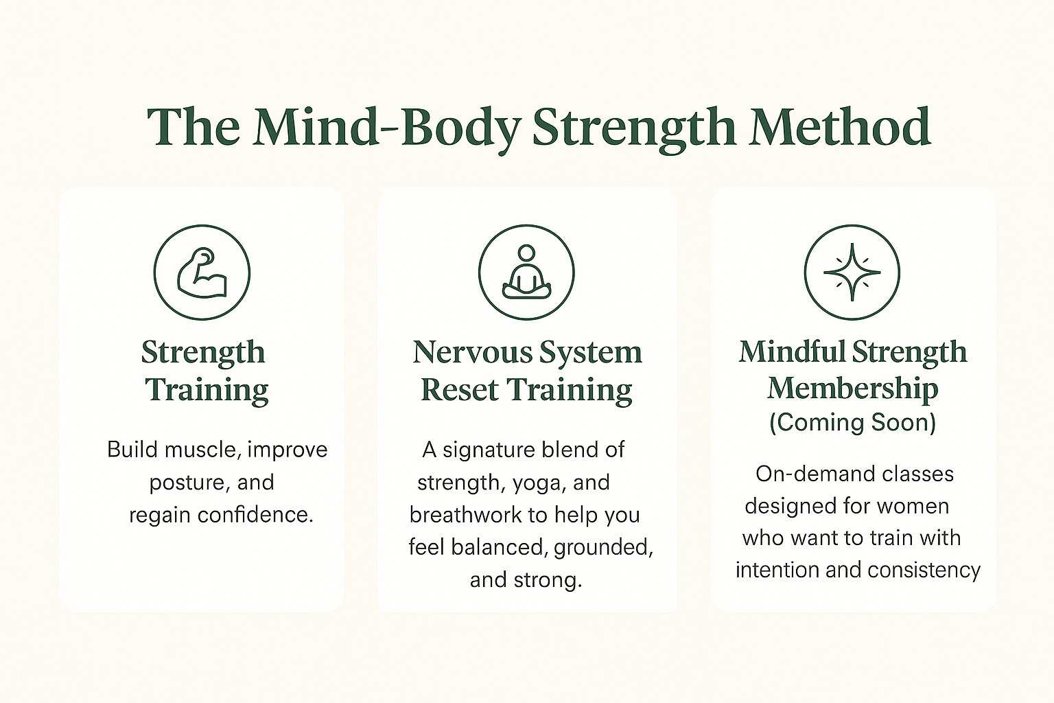 Mindful strength training, yoga, and breathwork rooted in nervous system regulation — designed for women ready to break cycles and rebuild confidence.